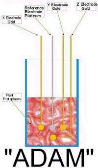 … La máquina ADAM abre una fisura dimensional que permite una comunicación directa entre la máquina y la otra dimensión. Un plasma líquido que está en el centro de la máquina ADAM facilita la comunicación entre las dimensiones. Un campo electromagnético único que rodea el plasma permite que algunas porciones de éste se vuelvan “no locales” a través de la fisura dimensional. La comunicación entre el plasma local y el “no local” es el enlace de comunicaciones entre las dos dimensiones. Una sonda de platino y varias sondas de oro insertas en el plasma miden los cambios de frecuencia y voltaje varios miles de veces por segundo. Estas mediciones de frecuencia y voltaje del plasma son ingresadas en el programa de computadora que desempeña funciones de monitoreo y control en la célula de plasma.