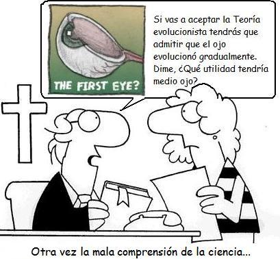 “Suponer que el ojo, con todos sus inimitables artificios para ajustar el foco a distintas distancias, para admitir distintas cantidades de luz y para la corrección de la aberración esférica y cromática, pudo haberse formado por selección natural parece, lo confieso libremente, absurdo de todo punto.”